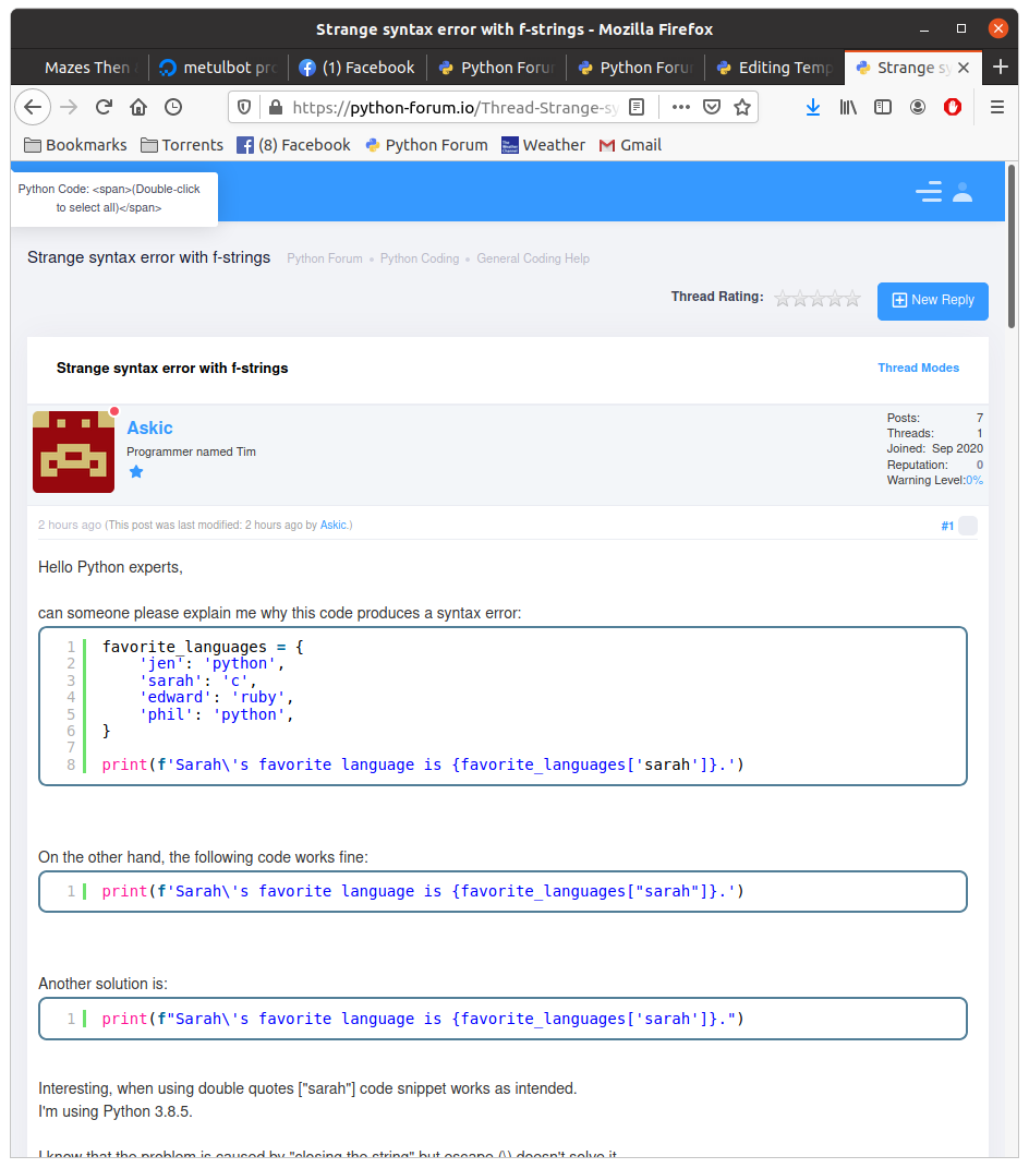 Posted by: MadisonAster - Oct-13-2020, 12:16 AM - Forum: Code Review