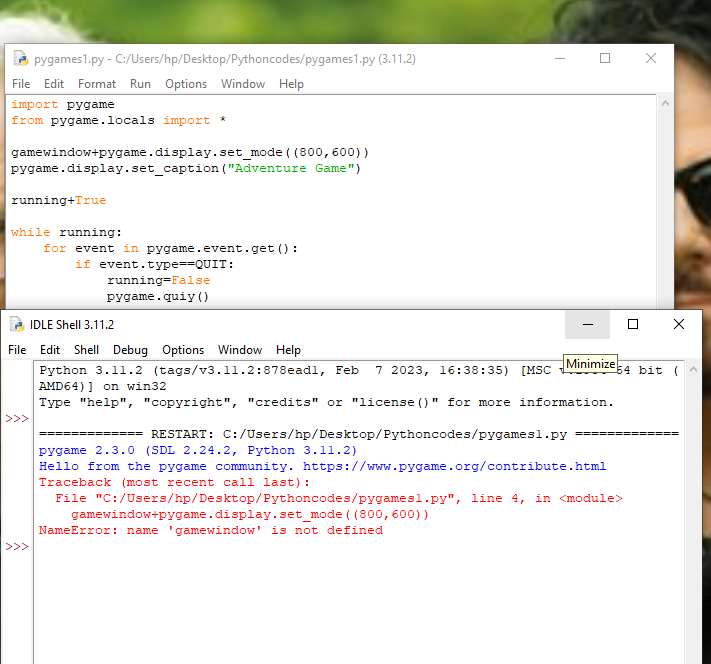 I am copying the text on the textbook for pygame but it is coming out as error when i run the code.Pls see the attached photo.[attachment=2449]I am c..... More